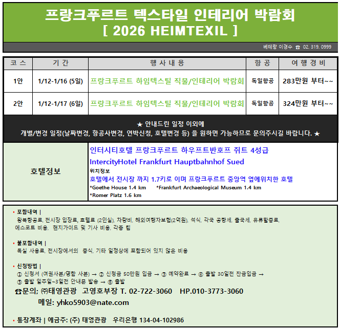 1. 여행계약서의 여행요금에는 다음 각 호가 포함됩니다. 단, 희망여행은 당사자간 합의에 따릅니다.