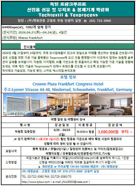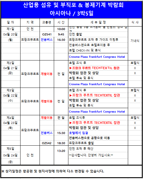 독일 프랑크푸르트 산업용 섬유 및 부직포 & 봉제기계 박람회